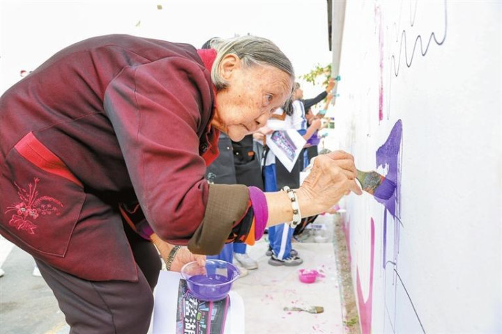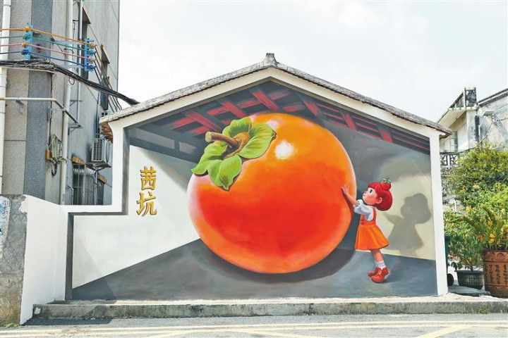 “汉字画”墙绘成为鳌湖艺术村地标。