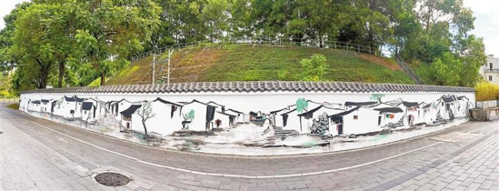 墙绘作品《水墨江南诗意栖居》为城市空间注入古典文化气息与宁静美感。