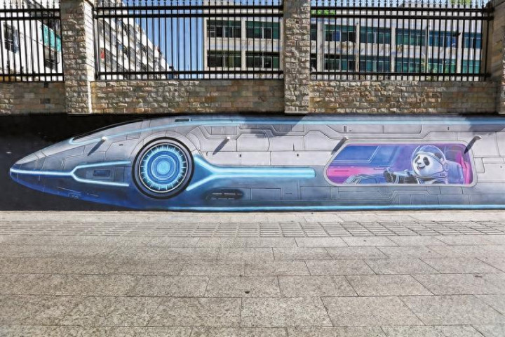 龙华街道盛波工业园的围墙仿佛推开了一扇通往明日世界的门扉。这幅长达84米、高1.8米的巨幅墙绘,邀请每一位路人走入一个由科幻元素、城市符号与互动设计共同构筑的未来都市。